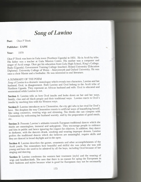 SONG OF LAWINO & SONG OF OCOL ---POETRY--FORM 3 & 4 BY OKOT P" BITEK